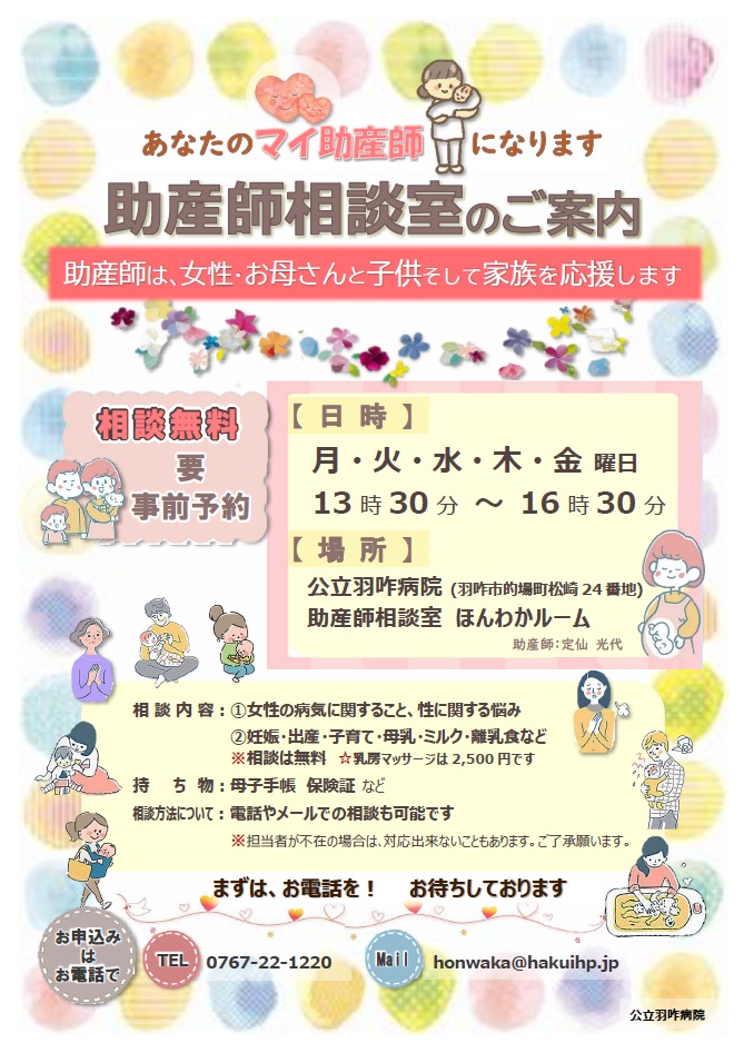 2026年1月より、助産師相談室の相談日を下記のように拡大しました。